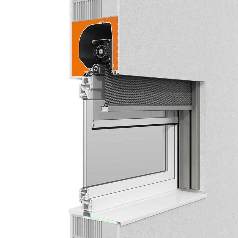 Aufsatzraffstorensysteme gibt es für Putz- und Klinkerfassaden inklusive der möglichen Auf- und Nachrüstung mit integriertem Insektenschutzgitter oder Motorbetrieb.